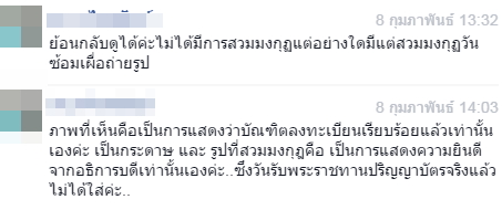 ล่าสุด จากคำชี้แจงของนักศึกษาจากมหาวิทยาลัยชื่อดังแห่งนี้ได้บอกถึงที่มาว่า ภาพดังกล่าวเป็นวันซ้อมเท่านั้น ซึ่งในวันพระราชทานปริญญาบัตรไม่ได้มีการสวมมงกุฏแต่อย่างใด