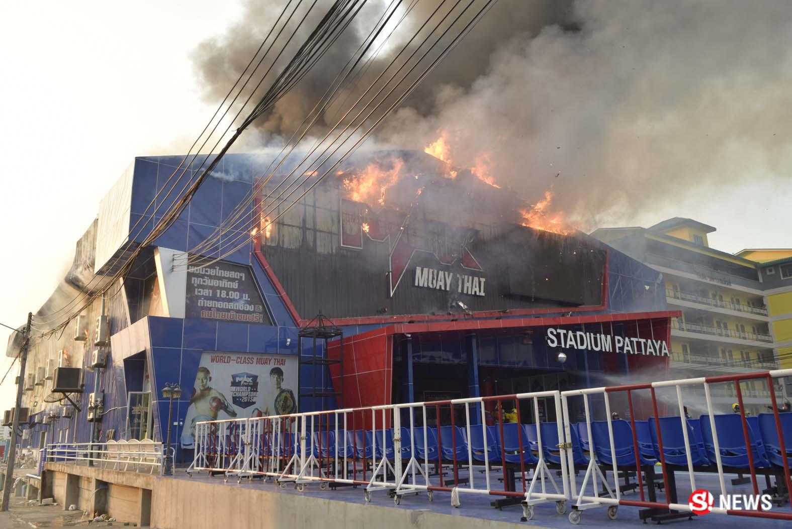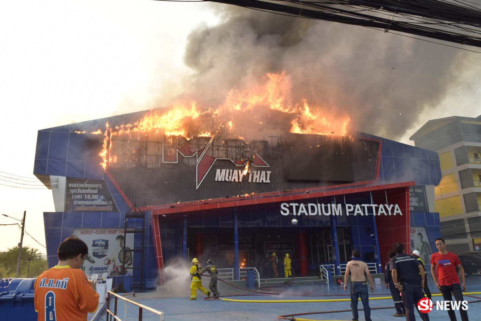 เมื่อเวลา 17.30 น. (18 ก.พ.) ร.ต.ท.อมรเทพ ใหม่มา พนักงานสอบสวน สภ.เมืองพัทยา จ.ชลบุรี ได้รับแจ้งมีเหตุเพลิงไหม้สนามมวย "แม็กซ์มวยไทยสเตเดียม" ตั้งอยู่ปากซอยสุขุมวิท-พัทยา 42 ถนนสุขุมวิท พัทยากลาง หมู่ 9 ต.หนองปรือ อ.บางละมุง จ.ชลบุรี หลังรับแจ้งจึงประสานหน่วยป้องกันและบรรเทาสาธารณภัยเมืองพัทยา นำรถน้ำดับเพลิงและรถกระเช้ากว่า 10 คัน เดินทางไปตรวจสอบ