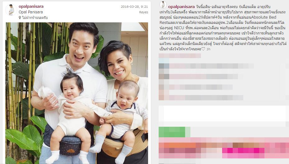 โอปอล์ โพสต์ภาพ 4 คนพ่อแม่ลูก เผยไม่กล้าคิดว่าจะมีวันนี้โอปอล์ โพสต์ภาพครอบครัวสุขสันต์ 4 คนพ่อแม่ลูก หลังน้องอลิน-อลัน อายุครบ 6 เดือนเต็ม เผยไม่กล้าคิดว่าจะมีวันนี้