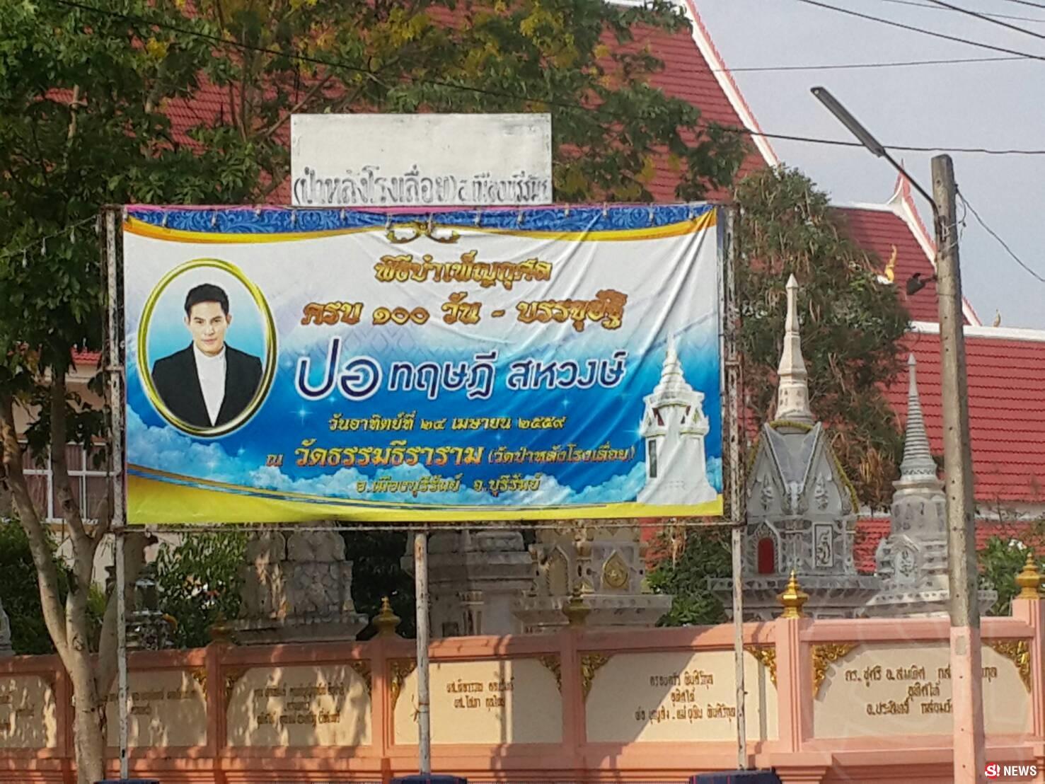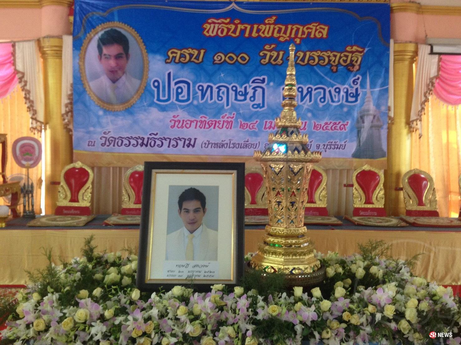 ในวันพรุ่งนี้ (24 เม.ย.) ครอบครัวสหวงษ์ ก็จะจัดทำบุญ 100 วัน และบรรจุอัฐิ "ปอ ทฤษฎี" พระเอกชื่อดังผู้ล่วงลับ ที่ วัดธรรมธีราราม (วัดป่าหลังโรงเลื่อย) จ.บุรีรัมย์ ล่าสุด ในวันนี้ (23 เม.ย.) คุณแม่พิศมัย สหวงษ์ ได้เดินทางมาตรวจความเรียบร้อยของสถานที่จัดงาน และให้สัมภาษณ์กับสื่อมวลชนอย่างเป็นกันเองว่า