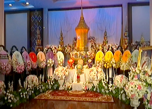พระบรมโอรสาธิราชฯ สยามมกุฎราชกุมาร โปรดเกล้าฯให้ผู้แทนพระองค์เชิญพวงมาลาพระราชทาน วางหน้าโกศศพ 'บรรหาร'