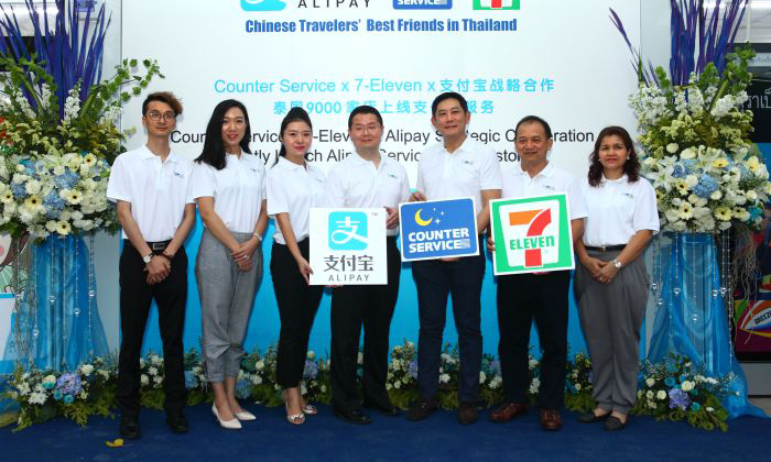 กรุงเทพมหานคร, 30 เมษายน 2559 – เพื่อเป็นการส่งเสริมการท่องเที่ยวไทย เซเว่นอีเลฟเว่น, Alipay และเคาน์เตอร์ เซอร์วิส ผนึกกำลังในการให้บริการแก่นักท่องเที่ยวจีนให้สามารถชำระเงินค่าสินค้าและบริการผ่านแอพพลิเคชั่น Alipay บนมือถือที่ร้านเซเว่นอีเลฟเว่น โดยความร่วมมือดังกล่าวนักท่องเที่ยวจีนสามารถชำระเงินได้ที่จุดชำระเงินเคาน์เตอร์ เซอร์วิสในร้านเซเว่นอีเลฟเว่นกว่า 9,000 แห่งทั่วประเทศ ผ่านระบบ Alipay โดยไม่เสียค่าธรรมเนียม ซึ่งคาดว่าการชำระเงินผ่านแอพพลิเคชั่น Alipay บนมือถือนี้จะช่วยเพิ่มความสะดวกและความพึงพอใจแก่ลูกค้าคนจีนเมื่อมาใช้บริการที่ร้านเซเว่นอีเลฟเว่น