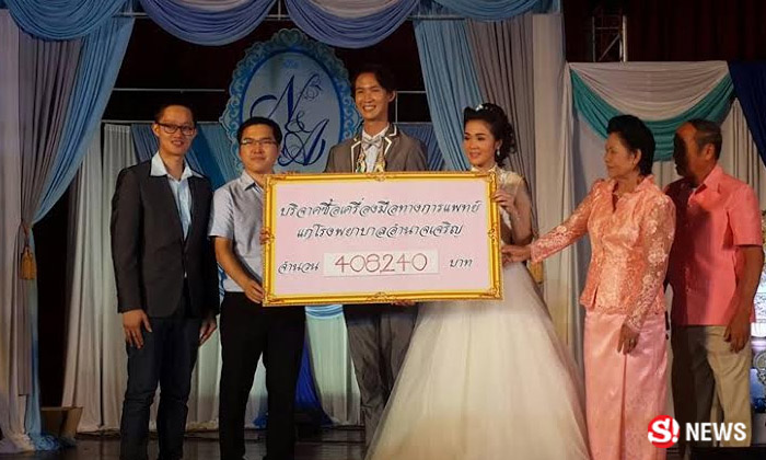 โดยคู่บ่าวสาวทั้ง 2 ได้ประกาศกลางเวทีให้กับแขกเหรื่อผู้ที่มาร่วมงานกว่า 800 คน ให้ทราบว่าเงินทั้งหมดจากซองของแขกที่มาร่วมงานนั้น จะบริจาคให้กับทางโรงพยาบาลอำนาจเจริญ รวมเป็นจำนวน 408,240 บาท