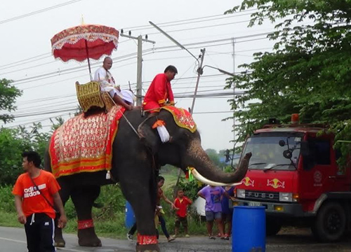 สีสันงานบวชขี่ช้างแห่นาคอ่างทองสนุกสนาน