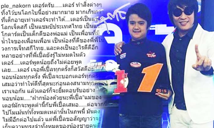 "ฝากน้องด้วยนะพี่เปิ้ล" แม่ของเตอร์มักจะพูดคำนี้กับพี่เปิ้ลเสมอ ต่อจากนี้ไปโมเม้นท์ทั้งหมดเหล่านั้นในภพนี้ มันคงไม่มีอีกต่อไปแล้ว แต่พี่เปิ้ลขอสัญญาว่าจะเก็บความทรงจำทั้งหมดของน้องชายคนดีคนนี้ไว้ในใจของพี่เปิ้ลตลอดไป หลับให้สบายนะครับน้องเตอร์ RIP เด็กดี แห่งวงการเจ็ทสกีไทย"