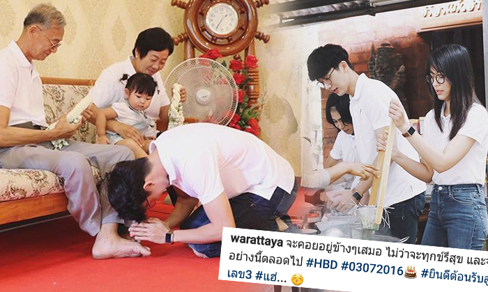 ดีเจพุฒ กราบเท้าพ่อแม่ขอพรวันเกิด ควง จุ๋ย ทำบุญชื่นมื่น