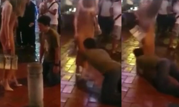 หนุ่มจีนคุกเข่าง้อแฟน แต่พลาดดึงเกาะอกฝ่ายหญิงหลุด