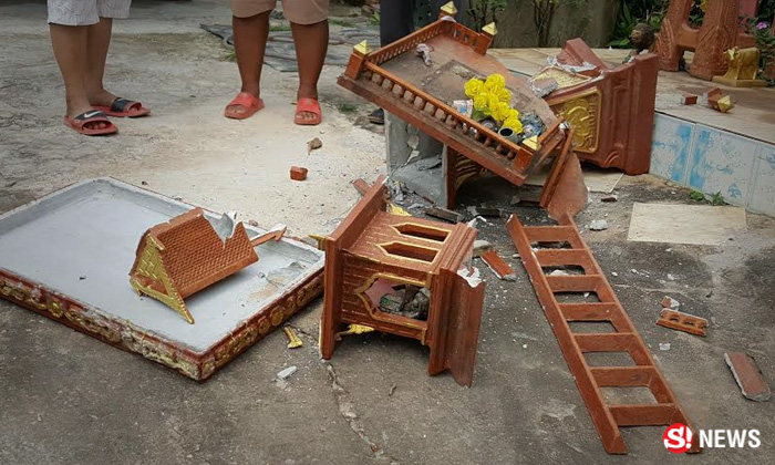 ไม่หวั่นอาถรรพ์! หนุ่มคลั่งทุบศาลพระภูมิทั้งหมู่บ้าน พัง 42 หลัง