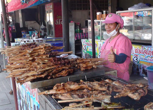 ศรีสะเกษคนแห่ซื้อไก่ย่างไม้มะดันห้วยทับทัน