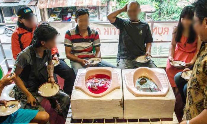 ร้านอาหารสุดแปลกในอินโดนีเซียใช้ภาชนะเป็นส้วมซึมแบบนั่งขนาดเท่าของจริง