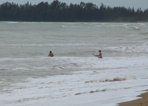 บรรยากาศบริเวณชายหาดของจังหวัดพังงา โดยเฉพาะชายหาดคึกคัก อ.ตะกั่วป่า จ.พังงา พบว่า ได้มีการนำธงแดงของโรงแรมต่าง ๆ นำธงปักเตือนให้ระมัดระวังการลงเล่นน้ำทะเลตลอดแนวชายหาด เนื่องจากคลื่นลมในทะเลค่อนข้างแรง จากมรสุมตะวันตกเฉียงใต้กำลังปานกลางที่พัดปกคลุมทะเลอันดามัน ภาคใต้ตอนบน และอ่าวไทยตอนบน เริ่มมีกำลังแรงขึ้น แต่พบว่า ยังมีนักท่องเที่ยวจำนวนหนึ่งที่ฝ่าฝืนลงเล่นน้ำ โดยไม่ได้สนใจคลื่นที่ถาโถมเข้ามายังชายฝั่ง นอกจากนี้ ยังพบว่าเกือบตลอดแนวหาดทราย มีขยะที่คลื่นพัดเข้าหาฝั่งกระจายอยู่เป็นจำนวนมากเช่นกัน