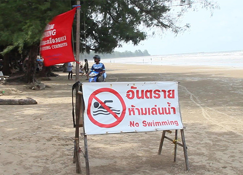 ติดธงแดงป้ายเตือนห้ามลงเล่นน้ำทะเลจันทบุรี