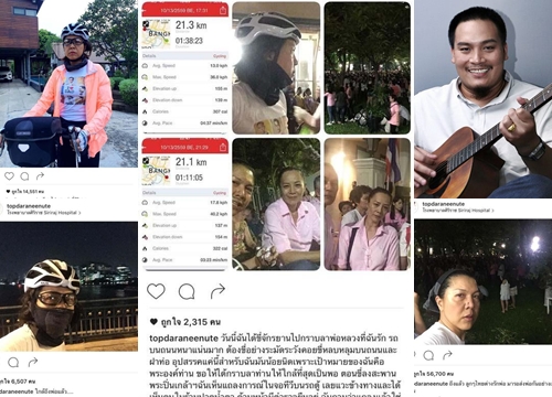 หลังประชาชนชาวไทยหลั่งน้ำตาร่ำไห้กับความสูญเสียครั้งยิ่งใหญ่ ทันทีที่สำนักพระราชวังมีประกาศ ว่า พระบาทสมเด็จพระปรมินทรมหาภูมิพลอดุลยเดช มหิตลาธิเบศรรามาธิบดี จักรีนฤบดินทร สยามินทราธิราช บรมนาถบพิตร สวรรคต ต่างร่วมกันโพสต์ข้อความร่วมน้อมเกล้าน้อมกระหม่อม ถวายอาลัย ส่งดวงพระวิญญาณพระองค์ เสด็จฯ สู่สวรรคาลัย หนึ่งในดารานักแสดง "ท็อป ดารณีนุช" ก็ได้โพสต์ภาพลงอินสตาแกรมเช่นกัน เป็นภาพคู่ตนกับจักรยาน บอกเล่าความตั้งใจ ฉันจะไปกราบพ่อที่ศิริราช ปั่นจากบ้านพักย่านสุขุมวิท 101 ไปยังโรงพยาบาลศิริราช ซึ่งเป็นระยะทางกว่า 21 กิโลเมตร โดยมีข้อความดังนี้ "ฉันจะไปกราบพ่อที่ศิริราช"