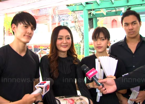 แก้มบุ๋มแจกริบบิ้นให้ปชช.ที่มาแสดงความอาลัย