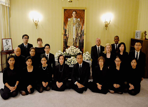 ในขณะเดียวกัน สถานเอกอัครราชทูตฯ ได้จัดให้มีสมุดลงนามแสดงความอาลัย ตั้งแต่วันที่ 14 ต.ค. 2559 เป็นต้นมา เพื่อให้ผู้แทนรัฐบาล คณะทูตานุทูต จากชาติต่างๆ คณะบุคคลทั้งภาครัฐและเอกชน ชุมชนชาวไทยและประชาชนทั่วไปได้ร่วมน้อมเกล้าน้อมกระหม่อมถวายความอาลัยและถวายราชสักการะด้วย
