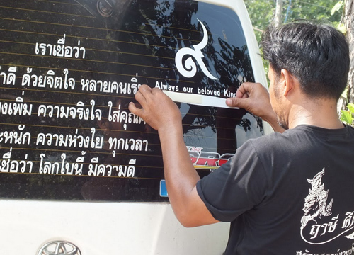 หนุ่มโคราช ตัดสติ๊กเกอร์จงรักภักดี รัชกาลที่ 9 แจกประชาชนติดรถฟรีไม่จำกัดจำนวน