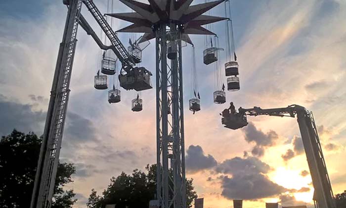 เครื่องเล่นของสวนสนุกในประเทศอังกฤษเสีย ทำให้นักท่องเที่ยว 19 คนติดอยู่ด้านบนนานกว่า 3 ชั่วโมง เครื่องเล่นดังกล่าว เป็นแคปซูล ที่ห้อยอยู่กับเสากลาง สามารถดึงผู้เล่น ขึ้นไปแก่วงอยู่เหนือพื้นดิน ซึ่งเป็นเครื่องเล่นที่ได้รับความนิยมอย่างมาก แต่เกิดเหตุขัดข้องขึ้น ทำให้ผู้โดยสารติดอยู่ในดับความสูง 20 เมตร หรือประมาณ 65 ฟุต เจ้าหน้าที่กู้ภัยต้องใช้กระเช้าขึ้นไปรับลงมา