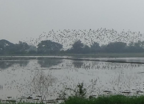 อ่างทองฝูงนกปากซ่อมหลายพันตัวบินวนหาอาหาร