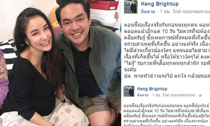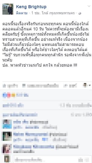 ด้าน ผู้จัดการส่วนตัวได้โพสต์ข้อความผ่านเฟซบุ๊คที่ใช้ชื่อว่า Keng Brightup โดยมีข้อความระบุว่า