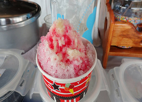 โดย นางนภาพร สัณฐิติวิฑูร อายุ 60 ปี ข้าราชการบำนาญ เล่าว่า เมื่ออากาศเริ่มร้อน ตนเองก็จะมาเปิดร้านขายน้ำแข็งไส หารายได้เพิ่ม เพราะขายง่าย ไม่ยุ่งยาก อีกทั้งยังใช้เงินลงทุนไม่สูง ซึ่งทางร้านจะมีเครื่องใส่น้ำแข็งไสให้เลือกหลายชนิด ทั้งเฉาก๊วย ลูกชิด รากบัว แมงลัก มันเชื่อม ฯลฯ ใส่น้ำหวานสีสันสดใส ตามด้วยนมสดและนมข้นเพิ่มความหอมมัน และที่ร้านเลือกใช้เครื่องปั่นน้ำแข็งแบบละเอียด หรือที่เรียกกันว่า น้ำแข็งเกล็ดหิมะ จึงเป็นที่ชื่นชอบของลูกค้าทุกเพศ ทุกวัย