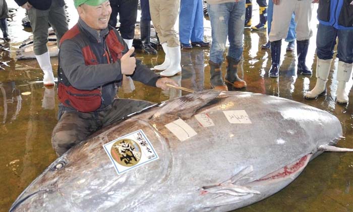 ชาวประมงจังหวัดวากายาม่า ประเทศญี่ปุ่น จับทูน่ายักษ์ น้ำหนัก 446 กิโลกรัม ทุบสถิติปีก่อนที่ 417 กิโลกรัม เปิดประมูลได้ราคาถึง 9.2 แสนกว่าบาท