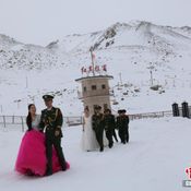 สำนักข่าวไชน่า นิวส์ของจีนรายงานเมื่อวันที่ 8 มี.ค. ที่ผ่านมาว่า กองกำลังตำรวจติดอาวุธป้องกันชายแดนประจำเขตปกครองตนเองซินเกียงอุยกูร์ของจีน จัดพิธีแต่งงานให้บ่าวสาว 3 คู่ บนภูเขาที่ถูกปกคลุมด้วยหิมะขาวโพลนบริเวณคุนจิรับ พาส (Khunjerab Pass) หรือเขตชายแดนจีน-ปากีสถาน ที่มีความสูงจากระดับน้ำทะเลถึง 5,100 เมตร เมื่อวันที่ 6 มี.ค. ที่ผ่านมา ซึ่งถือว่าเป็นงานแต่งงานที่อยู่สูงที่สุดในโลก