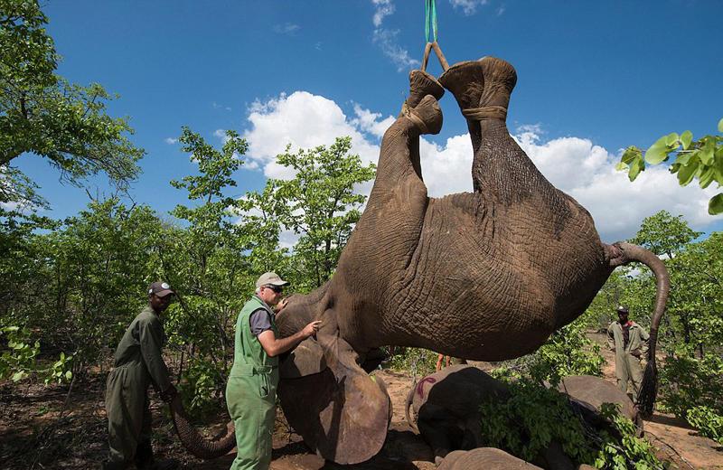 อัลบั้มภาพ ตื่นตา! เจ้าหน้าที่ใช้เครนยกช้าง ขนย้ายกลับเขตอนุรักษ์ในแอฟริกาใต้ ภาพที่ 9 / 11