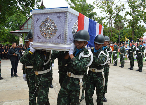ศพ อาสาสมัครทหารพราน 'วีรวิทย์ ธรรมนาม' กลับถึงมาตุภูมิ ที่ อำเภอศรีณรงค์ จังหวัดสุรินทร์ แล้วอย่างสมเกียรติ