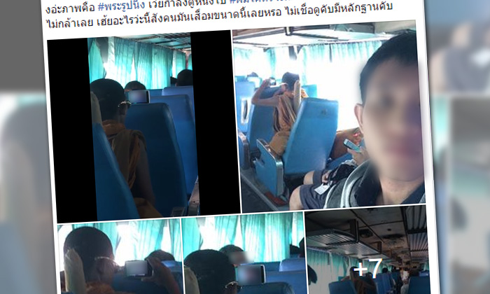 ชาวเน็ตกุมขมับ ชายแต่งชุดพระ นั่งดูหนังโป๊-เสียงดังลั่นรถทัวร์