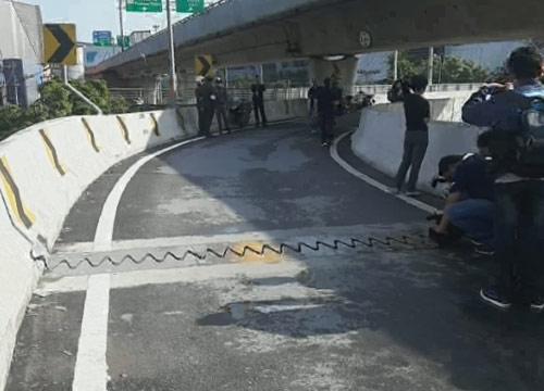 ขณะที่ด้านบนสะพานเจ้าหน้าที่ได้นำแบริเออร์มาวางกั้นพื้นที่พร้อมติดป้ายเตือนและปิดการใช้งานแล้ว