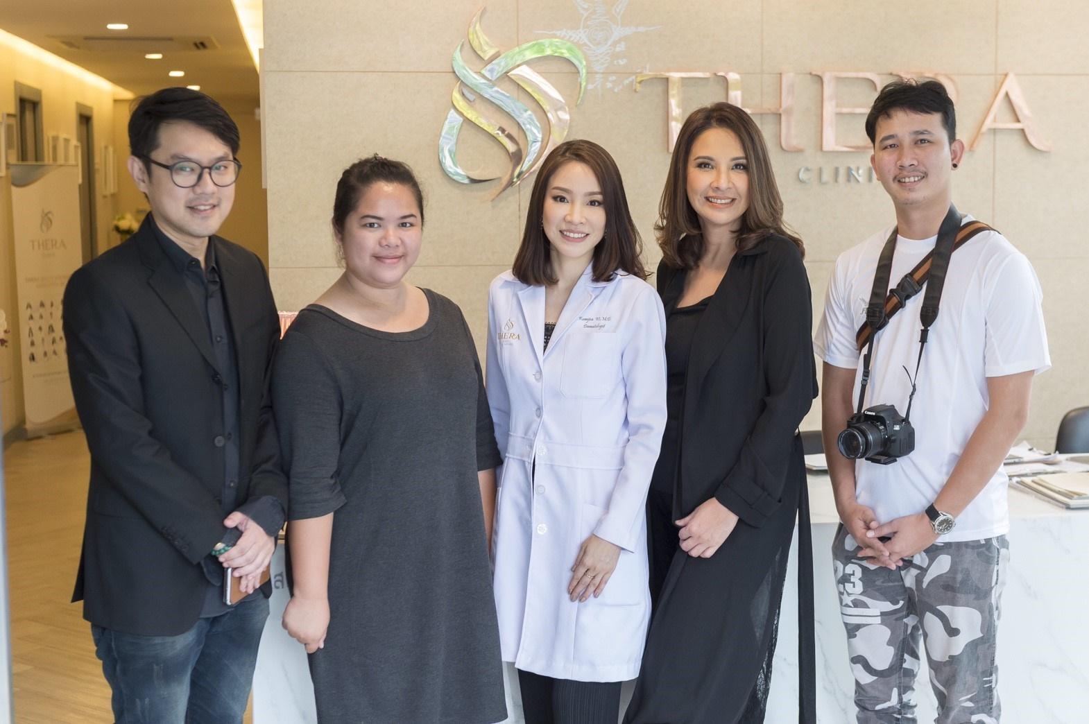 เอ๋-เทเรซ่า อากีล่าร์ ศรีโรจนันท์ หุ้นส่วนและผู้บริหารฝ่ายประชาสัมพันธ์ เทอร่าคลินิก เผยว่า “หน้าตา และบุคลิกภาพที่ดี เป็นสิ่งแรกที่จะสร้างความประทับใจได้แก่ผู้พบเห็นทั่วไปนอกจากหน้าตาที่สวยงาม หล่อเหลาแล้ว ผิวหน้าก็เป็นอีกหนึ่งส่วนสำคัญที่จะช่วยเสริมสร้างภาพลักษณ์ของคุณให้ดูดีขึ้น สร้างความมั่นใจให้กับตัวคุณเองได้ ที่เทอร่าคลินิก (Thera Clinic) เรามีทีมแพทย์เฉพาะทางผิวหนังที่ได้รับการรับรองจากสมาคมแพทย์ผิวหนังแห่งประเทศไทย และศัลยแพทย์ตกแต่งที่ได้รับการรับรองจากสมาคมแพทย์ศัลยกรรมตกแต่งแห่งประเทศไทย ทำให้คุณมั่นใจได้ถึงมาตรฐาน และความปลอดภัยสูงสุดในการรักษา พร้อมการดูแลเอาใจใส่อย่างใกล้ชิด ทีมแพทย์เฉพาะทางของเรายังพร้อมที่จะให้คำปรึกษา และสรรค์สร้างความสมบูรณ์แบบที่เหมาะสมกับความต้องการของแต่ละคน เทอร์ร่าคลินิกได้สร้างเส้นทางแห่งความงามที่เป็นเอกลักษณ์หนึ่งเดียวของเทอร์ร่าคลินิก “Thera 3” นวัตกรรมแห่งความงามเพื่อคุณ เพื่อความงามที่แท้จริง ได้แก่ THERA SKIN การบำรุงสภาพผิวลงรากลึกถึงระดับเซลล์ เพื่อผิวสุขภาพดี THERA SHAPING การยกกระชับรูปหน้าให้ได้สัดส่วน และ THERA FILLNG การเติมเต็มเสน่ห์บนใบหน้า ไม่ว่าจะด้วยการเสริมจมูก ทำลักยิ้ม หรือการทำตาสองชั้น เพื่อเพิ่มความสวยงามบนใบหน้า ทำให้คุณมีความมั่นใจค่ะ”