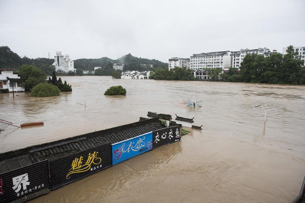 เจียงซีอ่วม น้ำท่วมหนักกลายเป็นเมืองบาดาลเมืองโบราณอู้หยวน ทางตะวันออกของจีน เผชิญกับฝนตกอย่างหนัก ส่งผลทำให้เกิดน้ำท่วมสูง เมืองทั้งเมืองจมอยู่ในใต้น้ำ กรมอุตุนิยมวิทยาประกาศเตือนภัยพายุฝนระดับสีแดงครั้งแรกของปี
