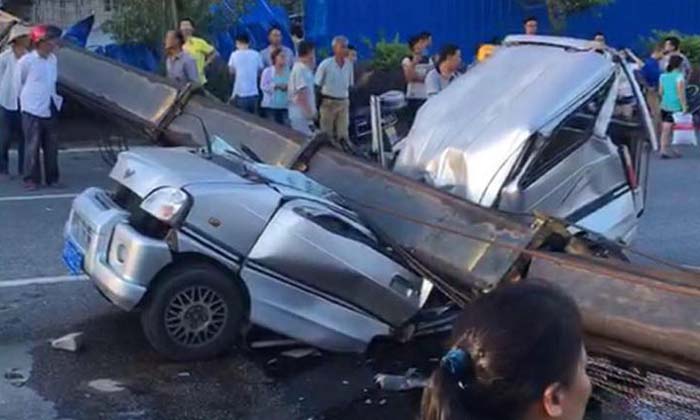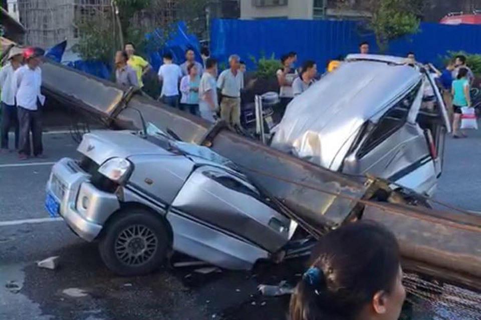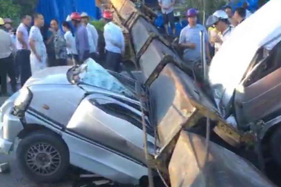 รถเครนยักษ์พลิกคว่ำทับเก๋งในจีนพังยับ ดับ 7 เจ็บ 3