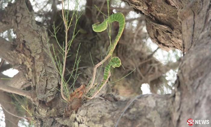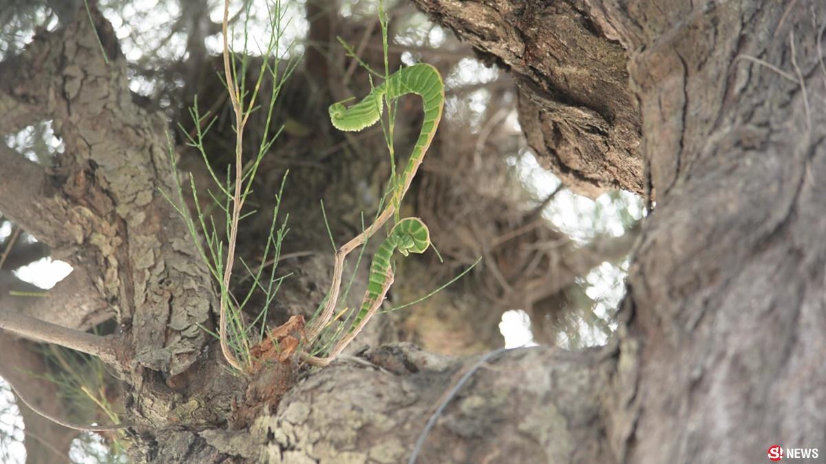 แห่ดูต้นสนใบคล้ายพญานาค หญิงสาวมาไหว้ จู่ๆ นอนเลื้อย