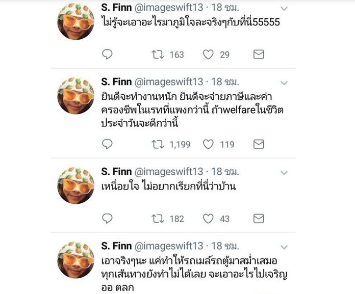 งานเข้าเต็มๆ เลยสำหรับนักร้องสาวเสียงดี อิมเมจ เดอะวอยซ์ ถูกชาวโซเชียลถล่มยับ หลังมีข้อความทวิตจากบัญชีที่ใช้ชื่อว่า @imageswift13 ได้ทวิตข้อความในเชิงตำหนิบ้านเกิดเมืองนอนของตัวเอง อาทิ "ประเทศเฮงซวย จะอีก 50 ปีหรืออีก 1000 ปีก็ไม่เจริญขึ้นหรอก" และมีอีกหลายๆ ข้อความทวิตโพสต์ในเชิงบ่นสวัสดิการของประชาชน