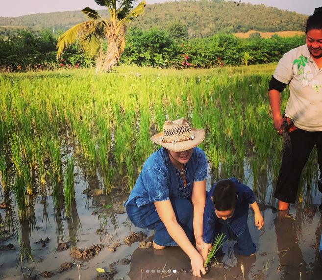ตั๊ก บงกช สอนลูกดี๊ดี ให้น้องข้าวหอมลองทำนาตั๊ก บงกช สอนลูกชายได้น่ารักมาก ให้ "น้องข้าวหอม" ได้เรียนรู้การเป็นชาวนา