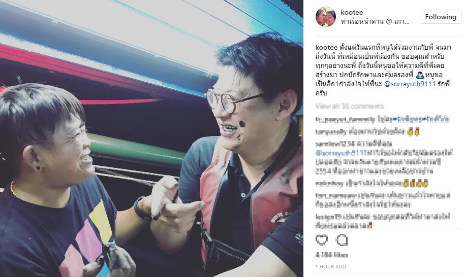 "ตั้งแต่วันแรกที่หนูได้ร่วมงานกับพี่ จนมาถึงวันนี้ ที่เหมือนเป็นพี่น้องกัน ขอบคุณสำหรับทุกๆอย่างนะพี่ ถึงวันนี้หนูขอให้ความดีที่พี่เคยสร้างมา ปกปักรักษาและคุ้มครองพี่ หนูขอเป็นอีก1กำลังใจให้พี่นะ @sorrayuth9111 รักพี่ครับ"