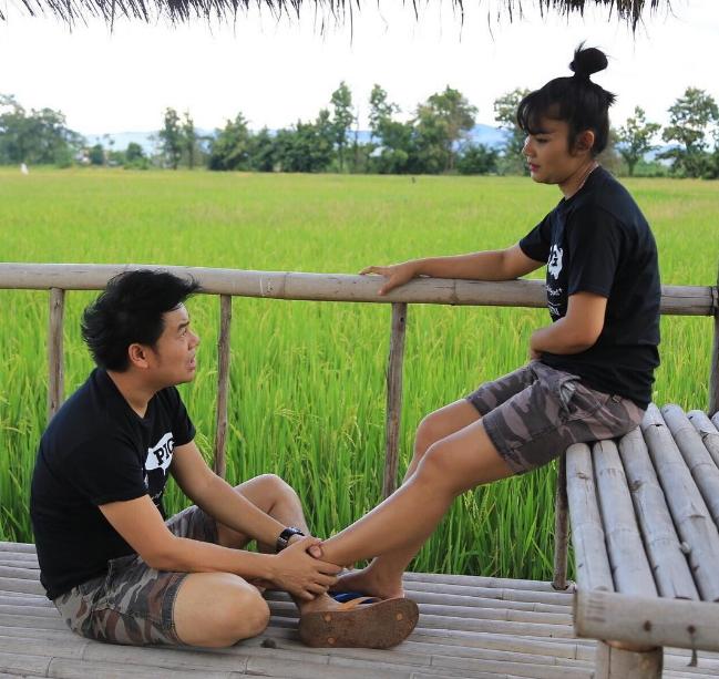 ตั๊กแตน ชลดา โชว์ภาพหวานแฟนผูกเชือกรองเท้าให้