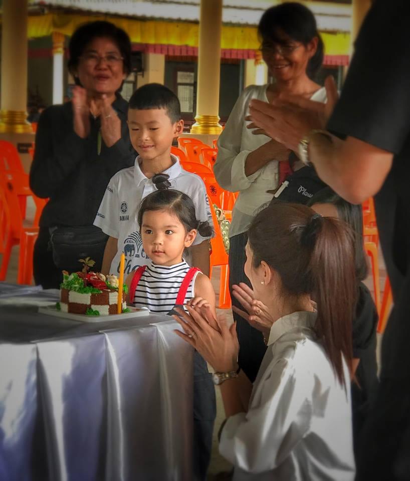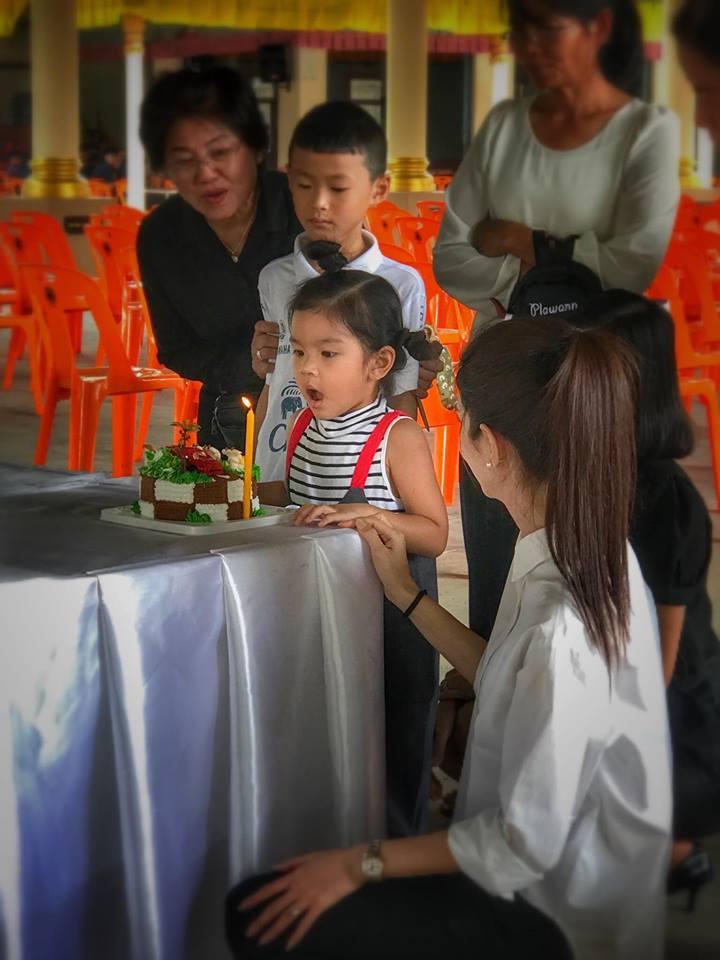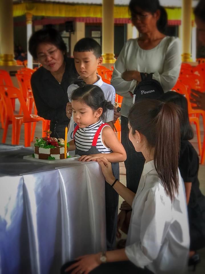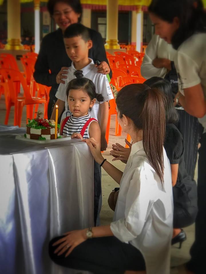 รูปภาพของ "น้องมะลิ" ทำบุญวันเกิด 4 ขวบ เป่าเค้กหน้าเจดีย์อัฐิพ่อปอ