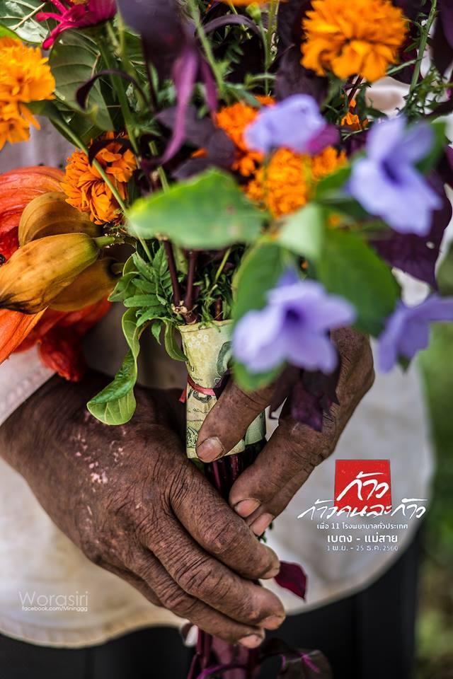 เป็นโครงการที่เต็มไปด้วยเรื่องราวประทับใจ สำหรับ "ก้าวคนละก้าวเพื่อ 11 โรงพยาบาลทั่วประเทศ" หลายภาพทำให้มีทั้งรอยยิ้ม เสียงหัวเราะ บางครั้งเจือไปด้วยน้ำตาแห่งความซาบซึ้ง วรศิริ คชรัตน์ ช่างภาพในโครงการ "ก้าว" ได้แชร์ความประทับใจผ่านเฟซบุ๊ก Warasiri Kotcharat เล่าเรื่องคุณลุงก่อร้างคนหนึ่ง ที่เก็บดอกไม้ข้างทางมาจัดเป็นช่ออย่างสวยงาม พร้อมเงินบริจาค ยืนรอมอบให้ ตูน บอดี้สแลม ทั้งที่ไม่รู้ด้วยซ้ำวา "พี่ตูน" คือคนไหน