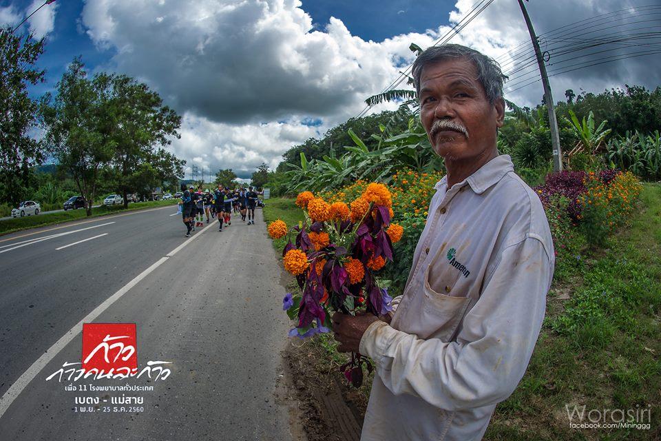 ลุงก่อสร้างถือช่อดอกไม้รอมอบให้ ตูน ทั้งที่ไม่รู้ว่าคือคนไหน