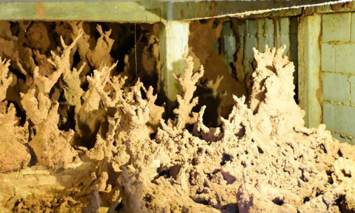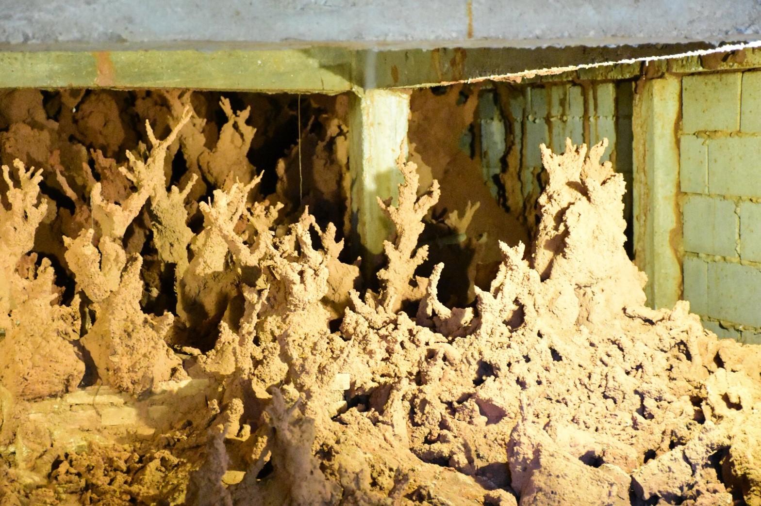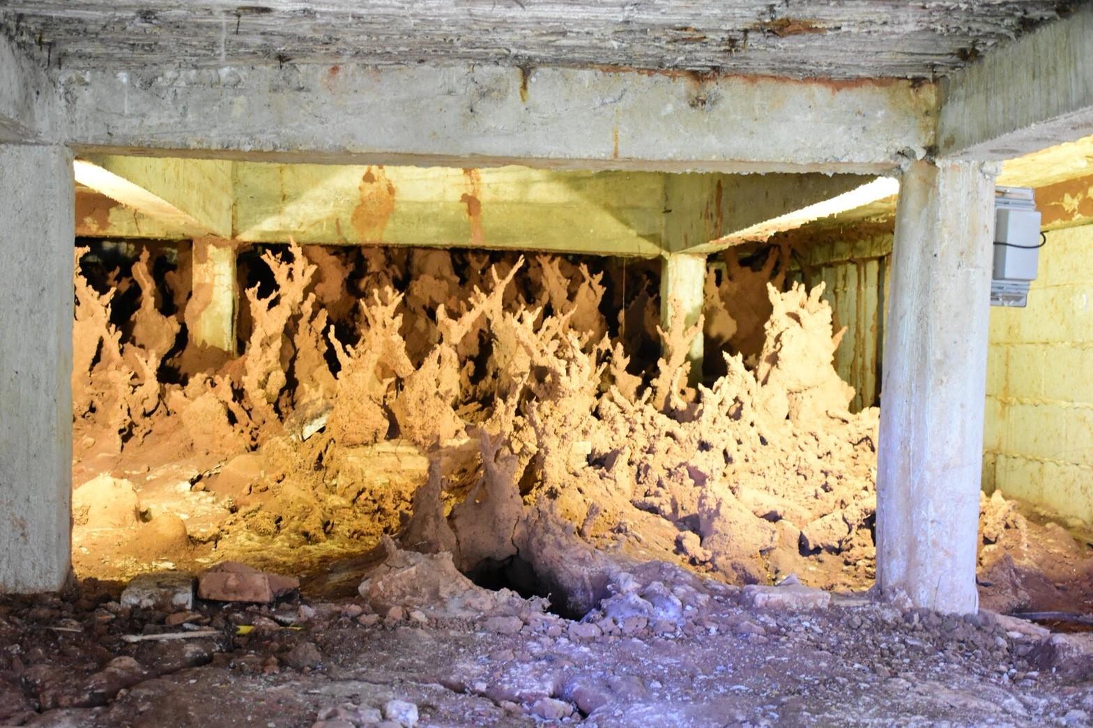 น่าอัศจรรย์ พญาปลวกผุดเป็นช่อ เต็มใต้อาคารพระแม่กวนอิมในวัดเชียงราย