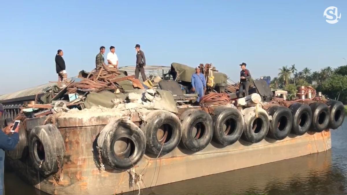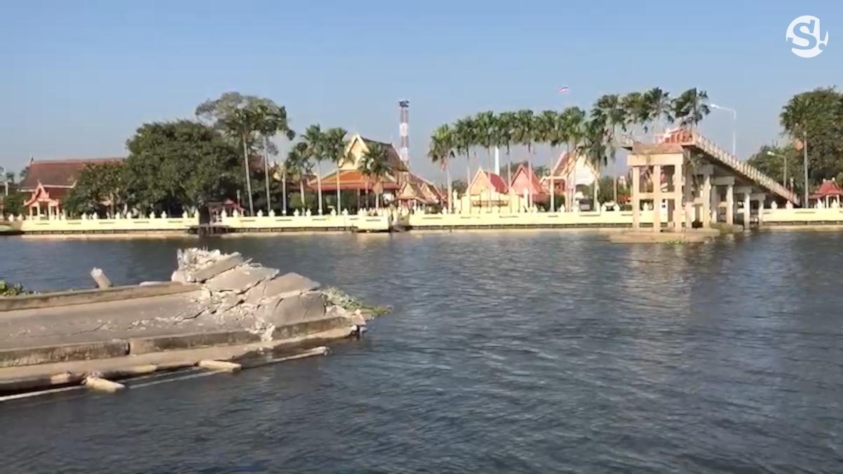 เรือบรรทุกสินค้าขนาดใหญ่ชนสะพาน พังถล่มกลางแม่น้ำท่าจีนเรือบรรทุกสินค้าขนาดใหญ่ ขนถั่วเหลืองชนสะพานข้ามแม่น้ำท่าจีนหักกลางแม่น้ำหน้าวัดไทยาวาส อำเภอนครชัยศรี