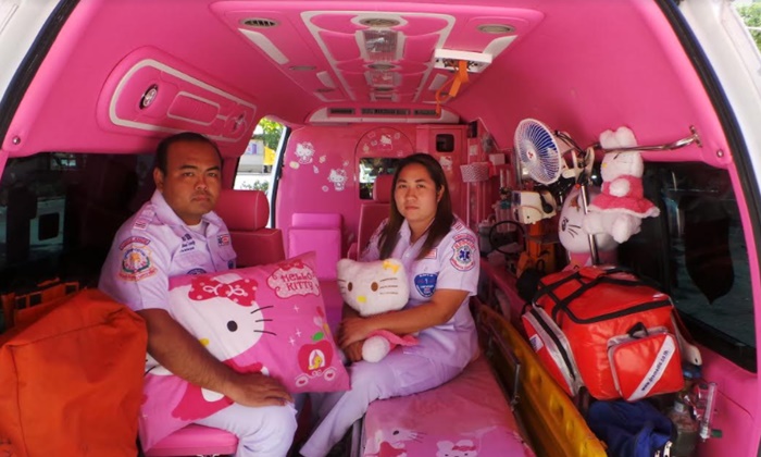 (25 ธ.ค.) ผู้สื่อข่าวประจำจังหวัดนครราชสีมารายงานว่า พบรถกู้ชีพพยาบาลของ นายวัชพงษ์ และ นางธิติมา สามีภรรยาซึ่งเป็นอาสาสมัครมูลนิธิพุทธธรรม ฮุก 31 นครราชสีมา จอดประจำการอยู่บริเวณเส้นบายพาสจอหอ อ.เมือง จ.นครราชสีมา ตกแต่งภายในรถเป็นสีชมพูทั้งคัน มีหมอนและผ้าห่ม รูปตัวการ์ตูนคิตตี้ ดูน่ารักคอยบริการผู้ป่วย