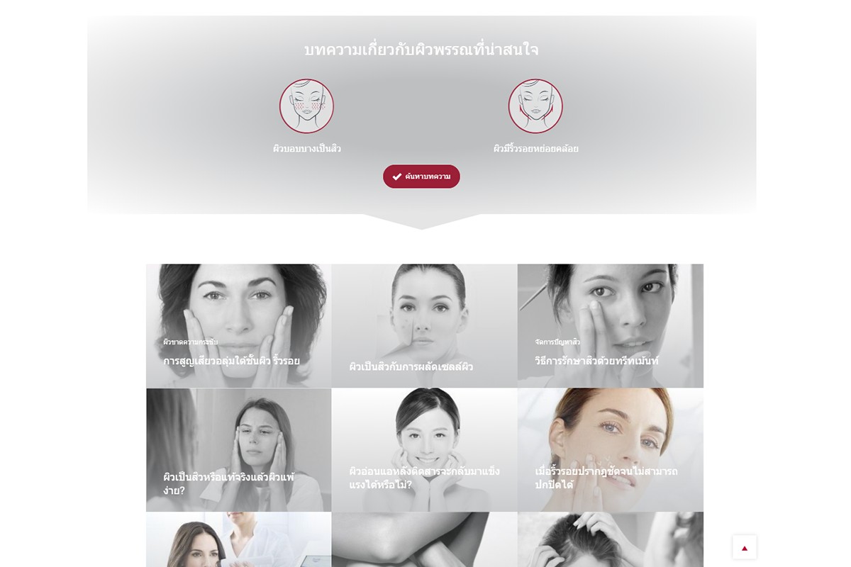 ยิ่งไปกว่านั้น บนเว็บไซต์ยังมีบทความเกี่ยวกับปัญหาผิวและวิธีการดูแลฟื้นบำรุงผิวหน้าให้เราได้เลือกอ่านอีกด้วย