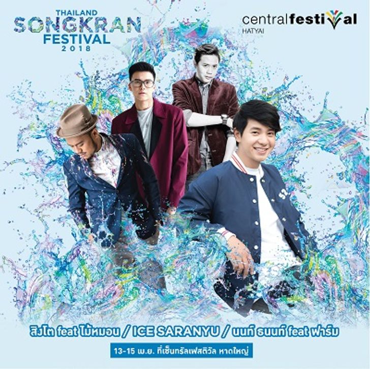 เซ็นทรัลเฟสติวัล หาดใหญ่ : หาดใหญ่ สงกรานต์ เฟสติวัล (13 – 15 เมษายน 61) ช้อป ชิม ตลาดออเจ้าย้อนยุค ประกวดหนูน้อยสงกรานต์ ฟังคอนเสิร์ตจากศิลปิน สนุกกับ Top Ten Asia DJ 2016 (13 เม.ย.) สิงโต feat ไม้หมอน + DJ Space Monkey, (14 เม.ย.) ICE SARANYU + DJ IVY & DJ Rockey, (15 เม.ย.) นนท์ ธนนท์ feat ฟาร์ม + DJ Baboo & DJ Som O