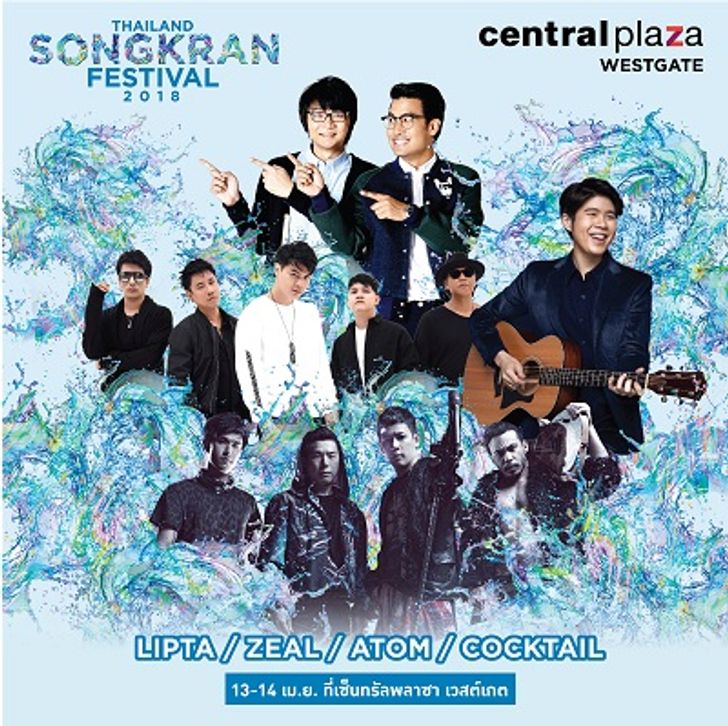 เซ็นทรัลพลาซา เวสต์เกต : WestGate Summer Concert 2018 (13-14 เมษายน 61) มาร่วมสรงน้ำพระ เพื่อความสิริมงคลให้กับชีวิตต้อนรับวันปีใหม่ไทย ก่อเจดีย์ทราย ย้อนวัยกับการละเล่นไทยๆ และสาดสีสันกับที่สุดของคอนเสิร์ตสงกรานต์ จัดหนัก จัดเต็ม ยิ่งใหญ่ที่สุดของจังหวัดนนทบุรี พร้อมศิลปินชั้นนำ (13 เม.ย.) LIPTA, ZEAL,(14 เม.ย.) ATOM, COCKTAIL