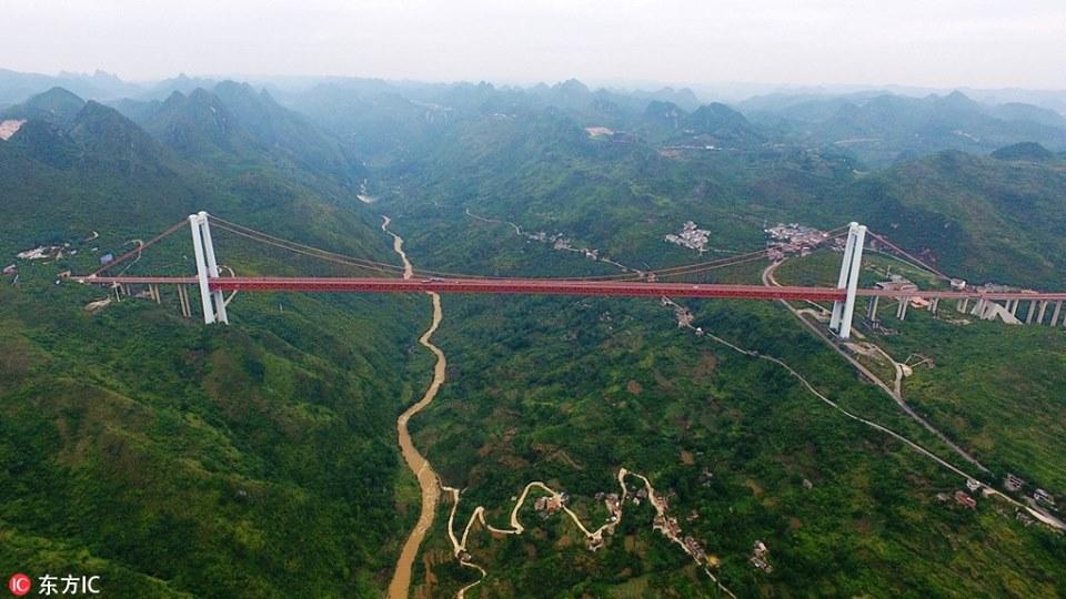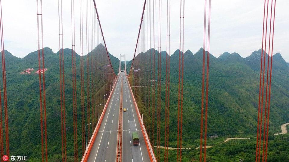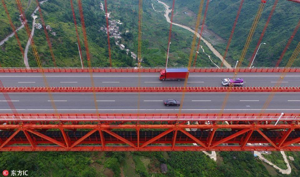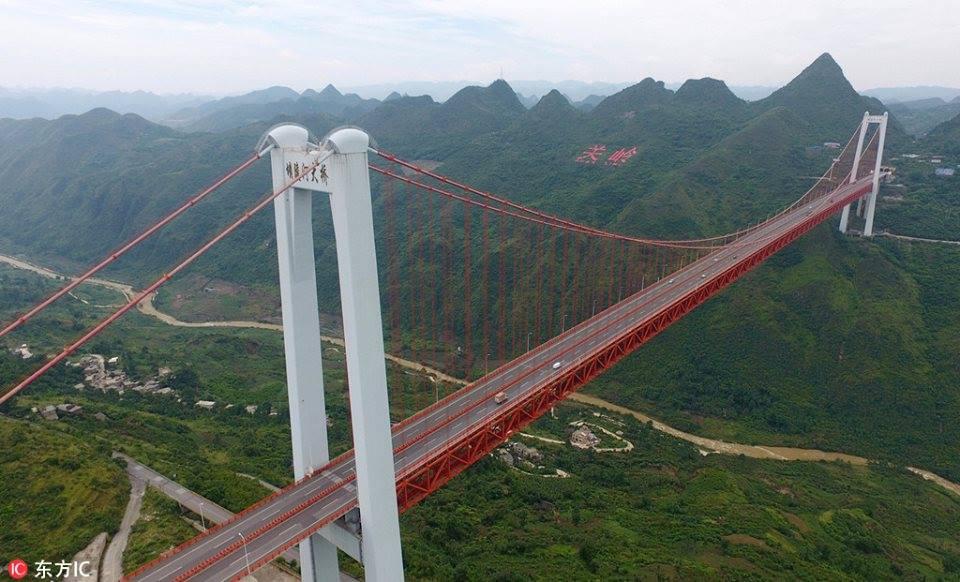 (8 มิ.ย.) สำนักข่าวซินหัวของจีนเผยแพร่ภาพสะพานข้ามแม่น้ำป้าหลิง (坝陵河大桥) ที่ถูกสร้างขึ้นในตำบลกวนหลิ่ง มณฑลกุ้ยโจว ทางตะวันตกเฉียงใต้ของประเทศจีน สะพานแห่งนี้มีระดับความสูง 370 เมตร เหนือแม่น้ำ มีความยาว 1,564 เมตร และถือเป็นสะพานที่ตั้งอยู่สูงที่สุดเป็นอันดับ 2 ของจีน และเป็นสะพานที่สูงที่สุดอันดับ 6 ของโลก