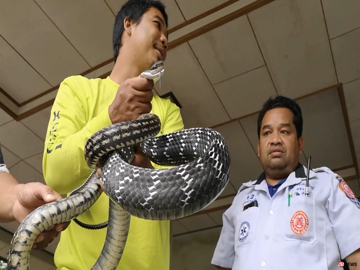 ล้อมวงจับ “งูสิงดง” พันธุ์ดุแยกเขี้ยวจ้องฉกกู้ภัยก่อนนำปล่อยป่า
