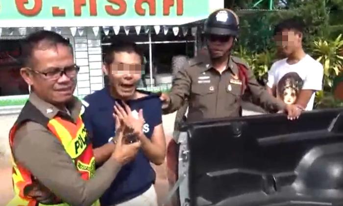 และได้ควบคุมตัวได้ทั้ง 2 คน คือ นายวัชรพล อายุ 27 ปี เป็นสาวประเภทสอง และนายออง อายุ 25 ปี ( สัญชาติเมียนมา ) กำลังเรียนช่างเสริมสวยอยู่ร้านเสริมสวยแห่งหนึ่ง โดยทั้งคู่มีอาการคล้ายเมายาเสพติด โดยนายวัชรพล พูดให้การ วกวนว่า ยอมรับว่าเสพยาเสพติดมา แต่ไม่บอกว่าอะไร และขอพบผู้ปกครอง ขอไม่ให้ตำรวจตรวจค้นตัว และยังโวยวาย ตลอดเวลา